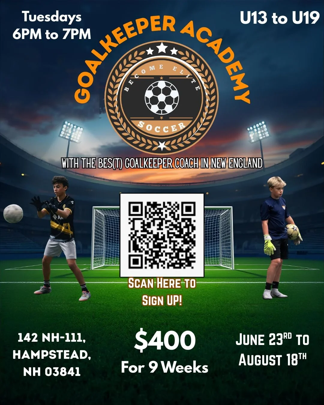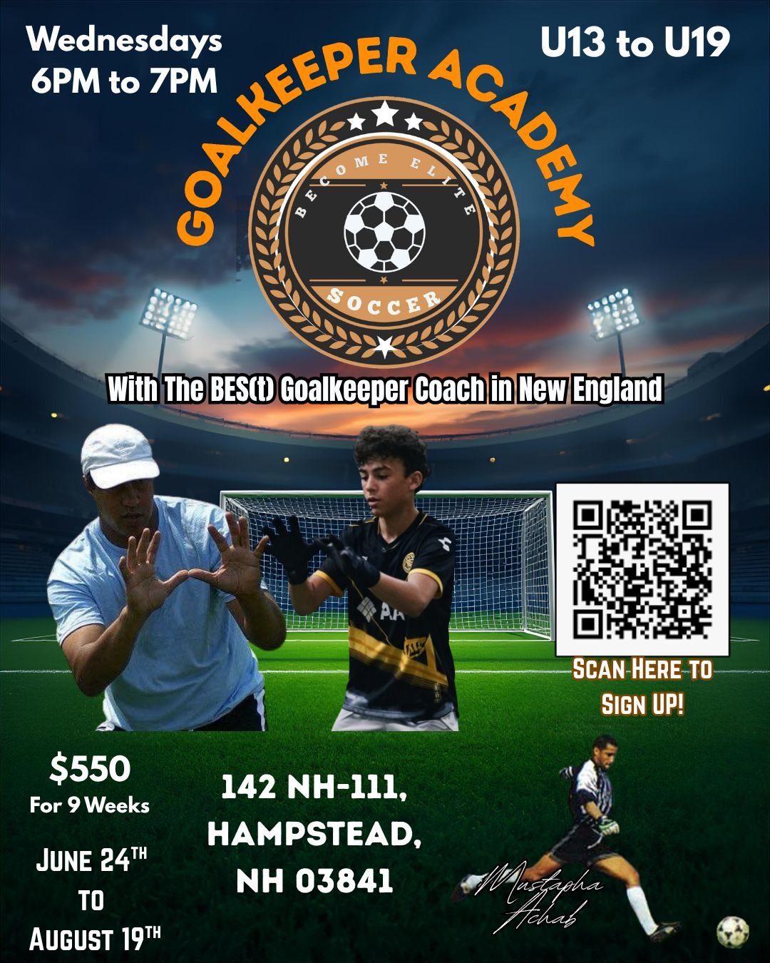 We are delighted to have secured the BESt goalkeeper Coach in the Country Mustapha Achab on Wednesdays & Coach Zach Rowell for Drop-In Goalkeeper Sundays!